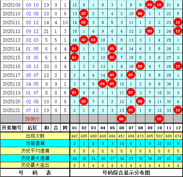 石浩第2025122期大乐透后永诀析:后区上周星期一后区奖号为01和07,上期开出奖号07和12,最近9周星期一与最近9期后区奖号大小比分别为10:8和7:11,奇偶比分别为10:8和11:7,本期看好后区出现全偶组合,关怀号码02、06、08、10。