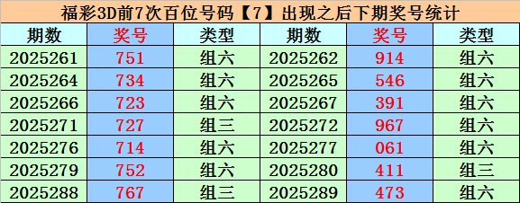 在百位号码7前7次开出之后,其下期离别开出号码:9、5、3、9、0、4、4,其中号码奇偶比为4:3,大小比为3:4,012路比为4:2:1。