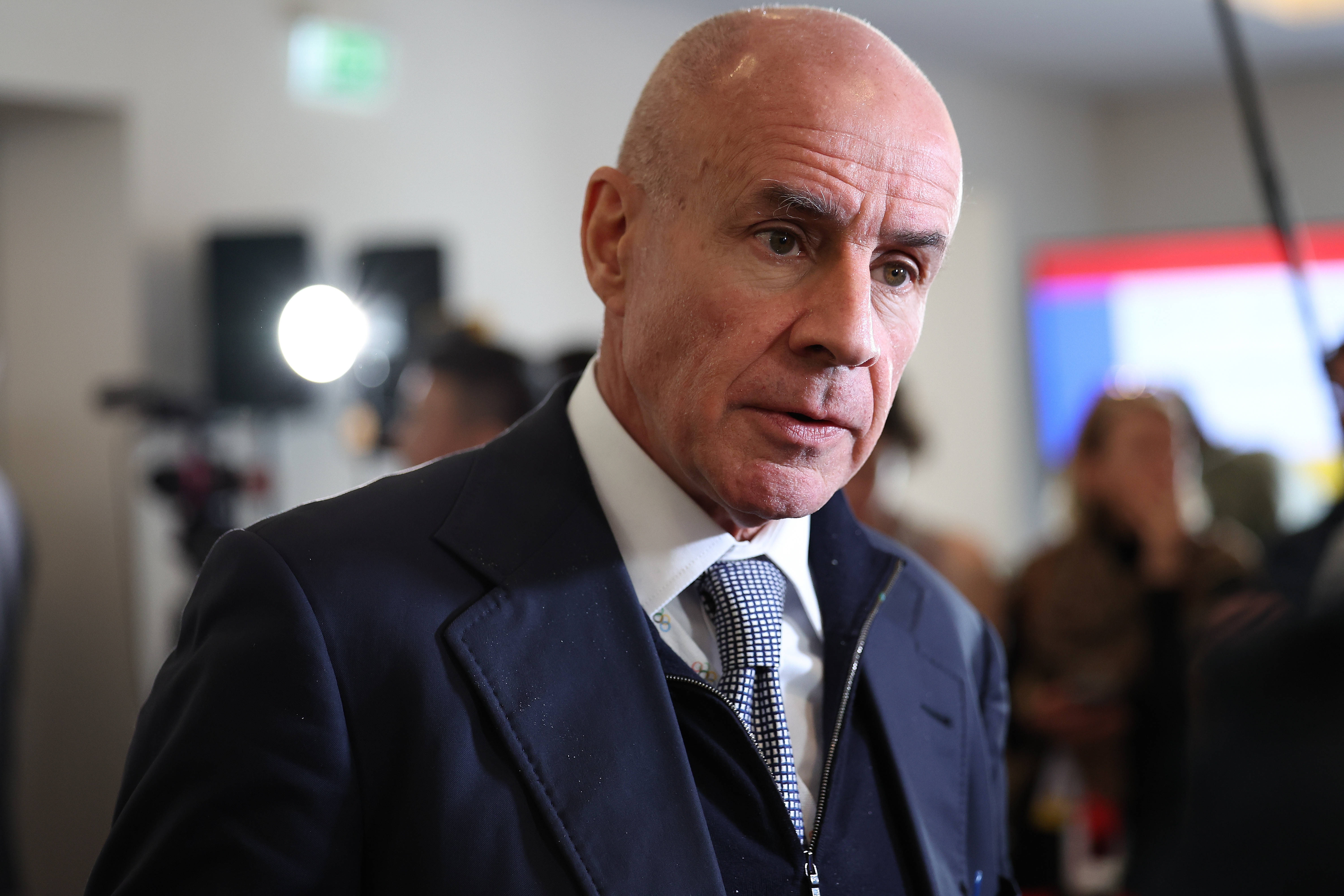 图为外洋雪联主席埃利亚施收受媒体采访(而已图)。新华社记者 曹灿 摄埃利亚施现场不雅看了米兰冬奥会单板滑雪须眉坡面障碍手段决赛,在苏翊鸣为中国代表团夺得本届冬奥会首金后,他收受了新华社记者采访。